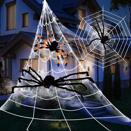 Junmo Halloween Spider Web Decoration Set 2pcs 50 Giant Spider 30 Fake Hairy Spider 200 Inch Triangular Spider Web 100 Inch Round Spider Web 50 G Stretch Cobweb For Haunted House Ya Walmart Canada